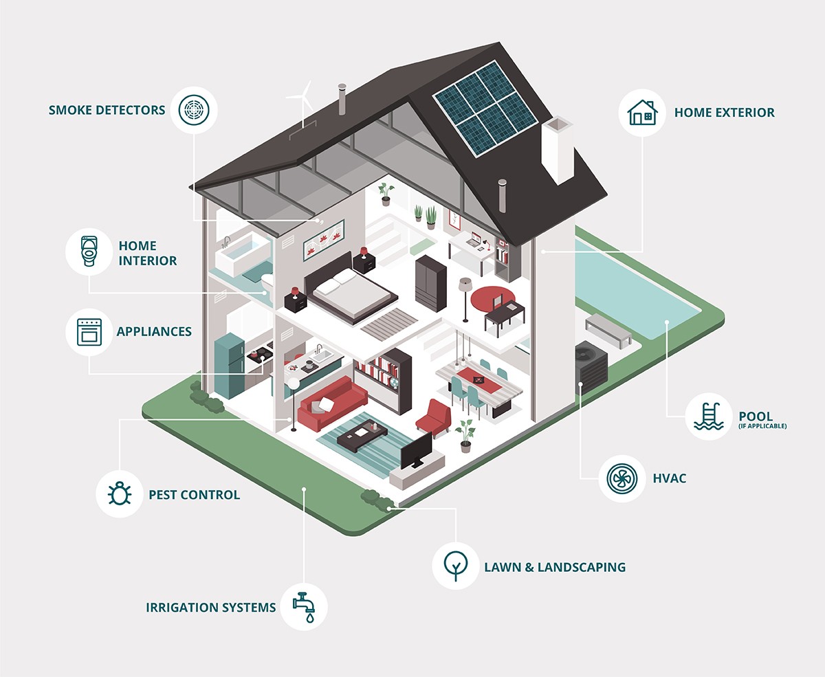 Our part: Fences, your garage door, roofing, second floor gutters, and the home’s structure